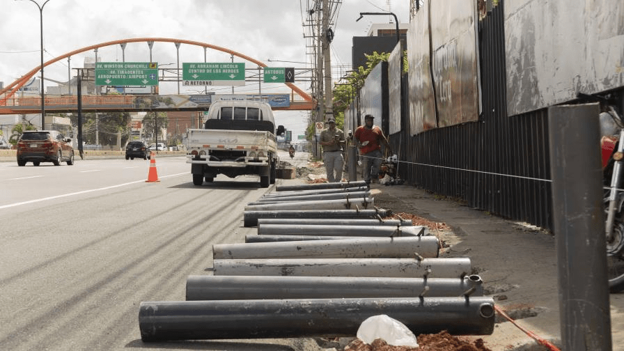 Propietarios de un solar con un hoyo para una construcción en la avenida 27 de Febrero, al lado del edificio del Ministerio de Industria y Comercio, que llevaba años sin protección, comenzaron este domingo a colocar bolardos para evitar accidentes.