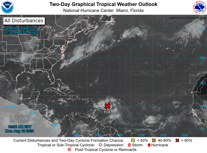 República Dominicana comenzará a sentir las lluvias relacionadas al potencial ciclón número #5, que se fortalece en el Atlántico y amenaza con convertirse en la tormenta Ernesto.