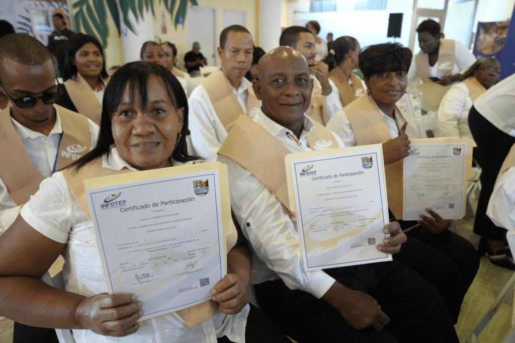 Santo Domingo Este. -El Instituto Nacional de Formación Técnico Profesional (INFOTEP) y el Ayuntamiento de Santo Domingo Este (ASDE), certificaron a 967 munícipes y colaboradores en 41 acciones formativas, que les garantiza un avance en su desarrollo socioeconómico.