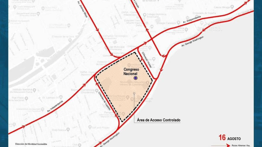 Indicó que la circulación de vehículos estará controlada en los alrededores del Teatro Nacional, donde se hará el acto de investidura; en la avenida Máximo Gómez, y el Congreso Nacional, en la Jiménez Moya, por lo cual se recomienda a la ciudadanía utilizar las avenidas Independencia, George Washington y Abraham Lincoln.