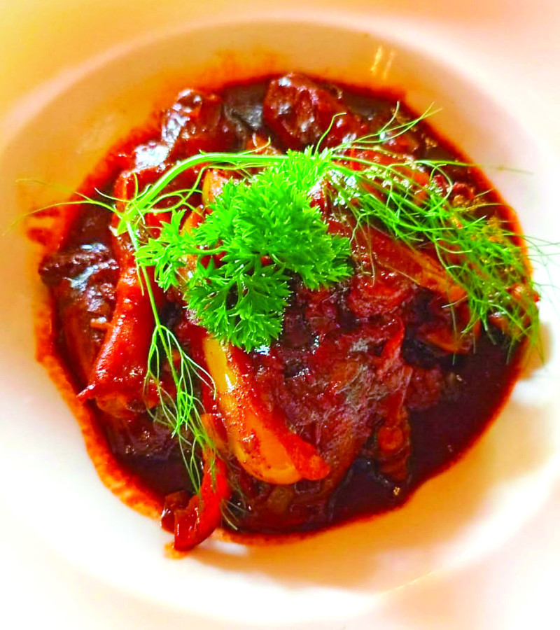 Apenas hay masa en los huesos. Eso sí, provoca chuparlos. Al camarero le retorno el plato: “No tiene carne”. “Es que los muslitos de la gallina criolla son muy delgados”, explica. “Pero en la carta no dice gallina criolla, sino gallina”, acota mi hijo. “Es cierto”, admite. “Además, no trae pechuga”, agrego. “Es que va en otros platos”. Decido ir a lo seguro: a los camarones que, con salsa curry y un toque de agua de coco, Alexis degusta. Para mis camarones, el complemento es arroz asiático en vez de bastami. Todo está muy bueno. Al pedir la cuenta, nos informa que la gallina no va a ser cargada. Le damos las gracias. (Mi hijo Alexis Ramos Brusíloff tomó las fotos para este artículo en Listín Diario).