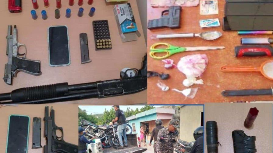 La Policía informó que en el sector Palmarito, fue detenido Esmelin Matos Beltré. Durante el allanamiento, los agentes encontraron una pistola calibre 9mm oculta en un bloque de cemento dentro de su vivienda, además de cinco motocicletas, una de ellas con numeración ilegible. Hasta el momento, no se ha presentado documentación que respalde la legalidad de las motocicletas.