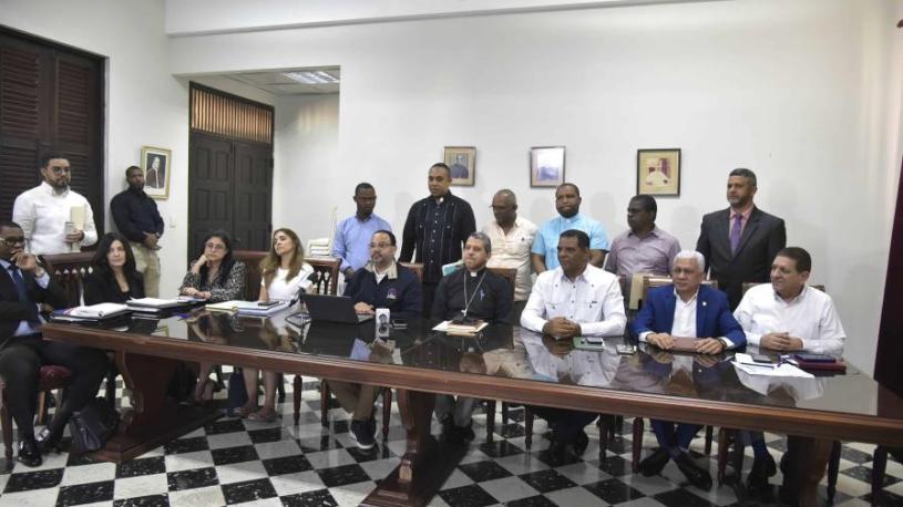 La comisión mediadora la completan monseñor Carlos Morel Diplán, obispo de La Vega; Joel Santos, ministro de Energía y Minas; Ricardo de los Santos, presidente del Senado y representante de Sánchez Ramírez en la Cámara Alta.