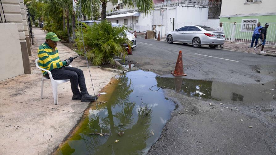 Verde se ha vuelto un charco en la calle Manuel Rodríguez Objío esquina Galván en Gascue, a una esquina del Palacio Presidencial. Es que en el lugar no existe filtrante, de acuerdo con residentes, y el agua doméstica y de lluvia se estanca cuando no puede correr por encima del pavimento.