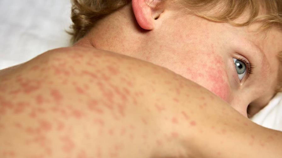 Los síntomas del sarampión comienzan con fiebre alta, tos, secreción nasal y conjuntivitis, seguidos de la aparición de un sarpullido rojo que se extiende desde la cabeza hasta el resto del cuerpo. Además, puede causar neumonía, encefalitis e incluso la muerte en casos severos.