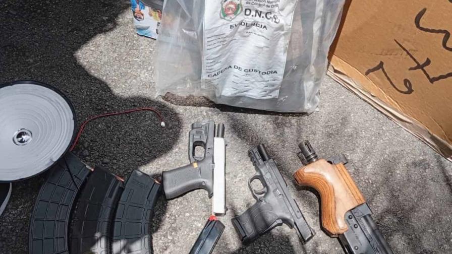 De acuerdo con un comunicado de la DNCD, se localizaron en el interior de una caja y una bocina un paquete de marihuana, un fusil (Micro Draco) calibre 7.62, dos pistolas (Smith & Wesson y Glock) ambas calibre 9mm, 90 cápsulas, tres cargadores para fusil, entre otras evidencias.