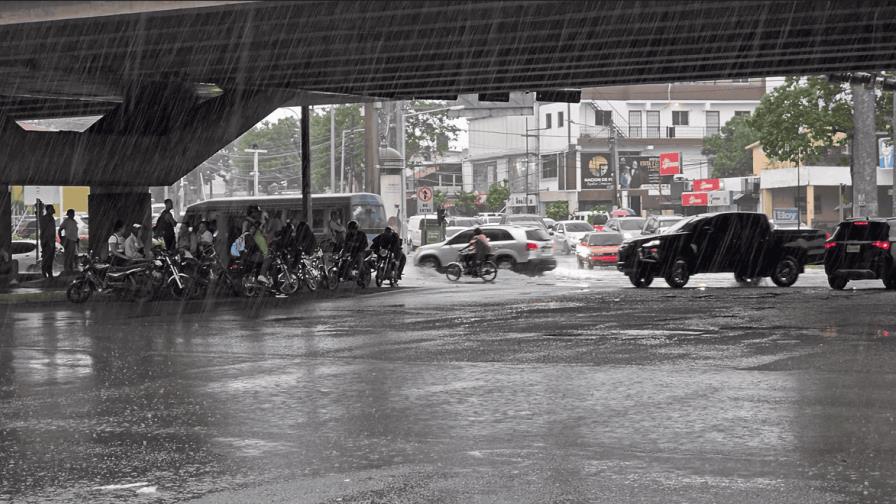 Debajo de los elevados de la avenida John F. Kennedy, decenas motoristas esperaban con paciencia a que pasara la incesante lluvia. También se observaron personas que cubrían sus cabezas con fundas plásticas.