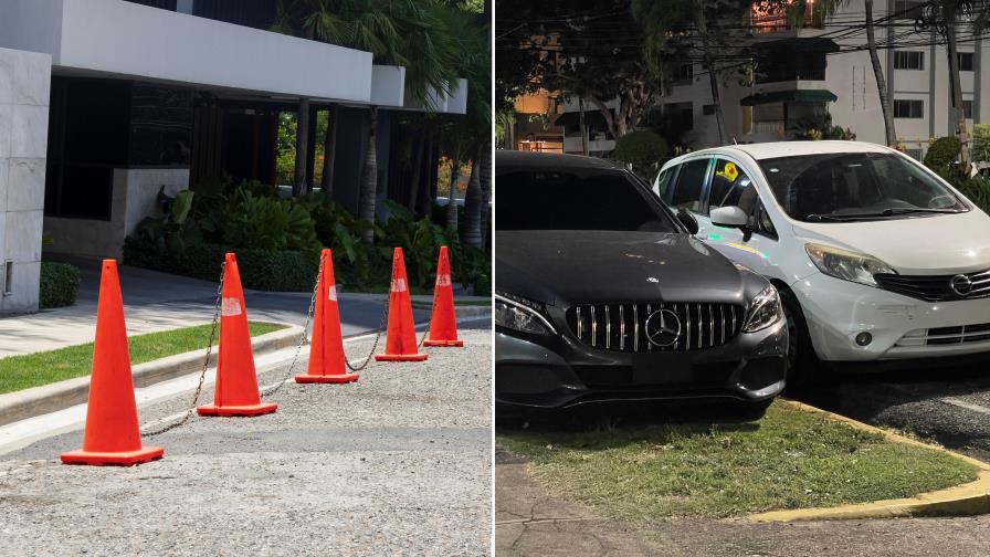 Conos plásticos, letreros de «No estacione» y obstáculos improvisados se colocan diariamente frente a viviendas, negocios y edificios residenciales en zonas como Piantini, Bella Vista y la avenida Anacaona, apropiándose de un espacio que es público: la calle y las aceras.