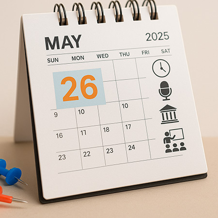 Agenda del día: lunes 26 de mayo del 2025 — La jornada de este lunes incluye actividades políticas, institucionales y académicas en distintos puntos del país, entre ellas una audiencia del Tribunal Superior Electoral, ruedas de prensa del PLD y del torneo MICFootball, un almuerzo oficial con la vicepresidenta Raquel Peña, así como conferencias en la UNPHU y la Biblioteca Nacional.