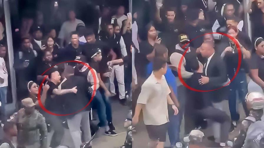 Durante el forcejeo, agentes de la Policía Nacional lanzaron gas pimienta para dispersar a la multitud que se había aglomerado frente al local.
