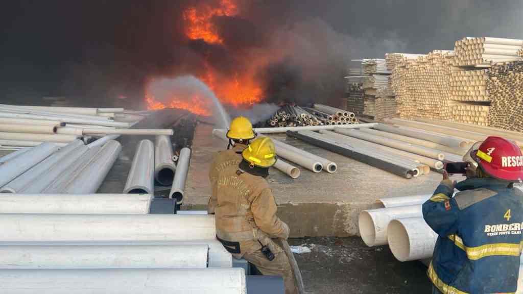 Aunque el fuego en la parte superior del área afectada fue controlado en un 80 %, persiste el riesgo de propagación hacia almacenes contiguos con materiales inflamables, indicó en su informe preliminar el Cuerpo de Bomberos de Verón Punta Cana.