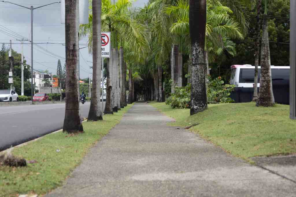 En el lado del Botánico, entre el contén y la acera, está la zona de amortiguamiento para paisajismo y protección al peatón que tiene una hilera de palmeras que serían eliminadas para ganar algunos metros.