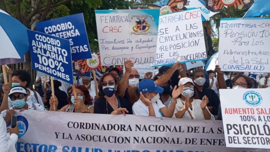 El pasado 5 de agosto, con pancartas en mano, miembros del sector salud, incluyendo psicólogos, bioanalistas, farmacéuticos, enfermeras graduadas, licenciados y técnicos en imágenes médicas, protestaron frente al Hospital Dr. Francisco E. Moscoso Puello para exigir pensiones al 100 %, aumento salarial para el personal administrativo, nombramiento del personal contratado en la pandemia del Covid-19 y cambios de designación, entre otros pedidos.