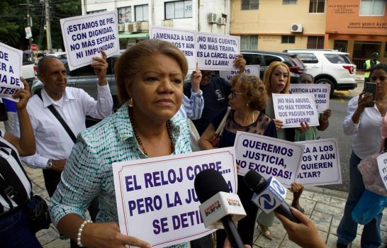 Un grupo de personas que se identifican como víctimas de la estafa inmobiliaria de la que se acusa al empresario Enmanuel Rivera Ledesma y a su familia volvió este jueves a manifestarse frente al Palacio de Justicia, exigiendo esta vez que se agilice el proceso penal, cuyo retraso calificaron «como un abuso» contra ellos.