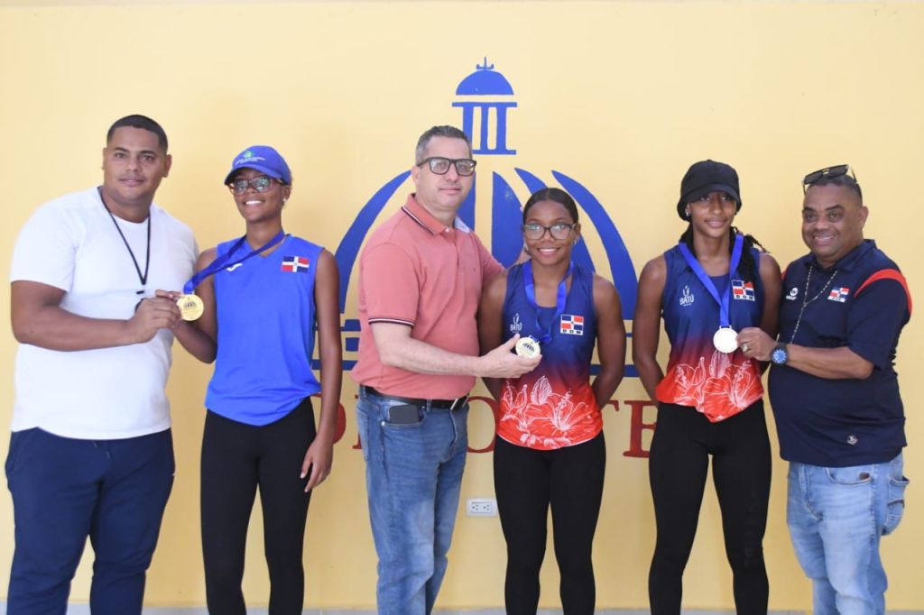 Anyelo Díaz, José Luis Bautista y José Pérez premian a las féminas Naomi Madé, Brandy Benjamín e Isauri Rodríguez, respectivamente.