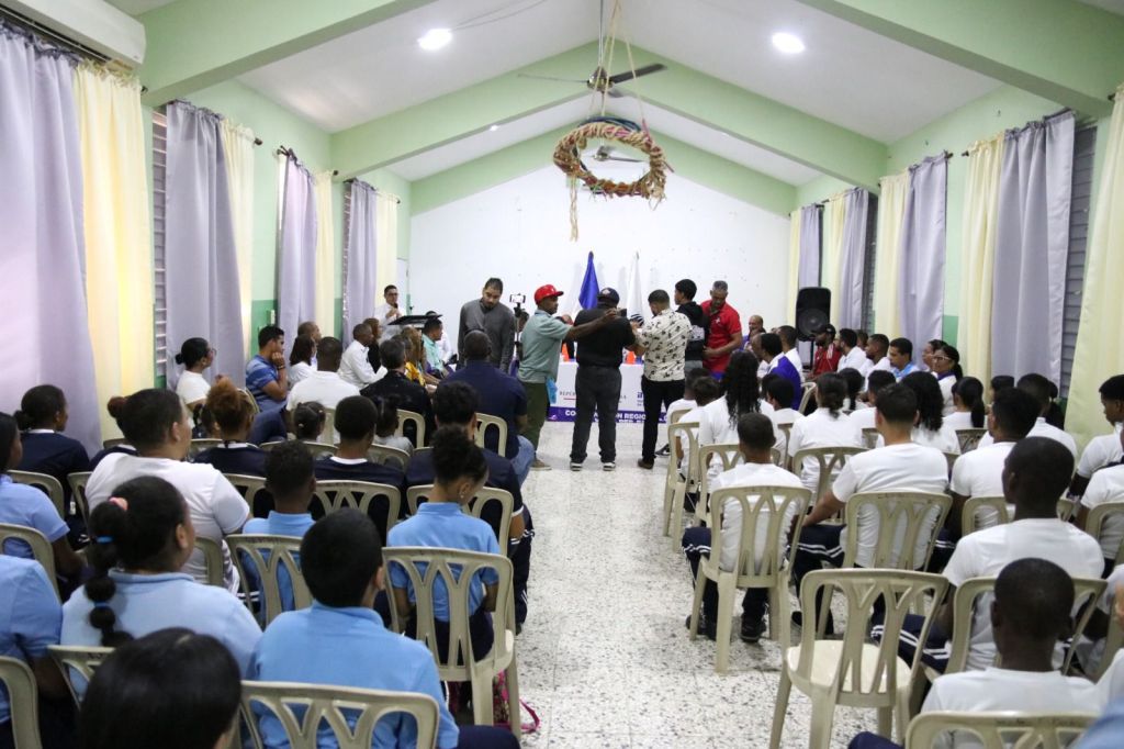 Federico Pérez destacó la importancia de estos útiles,María García puntualizó que esto se está haciendo en las demás regionales del país de una forma simultánea y Mary Jorge agradeció el gesto de director Alberto Rodríguez de elegir este centro educativo como sede para la entrega oficial en La Vega.