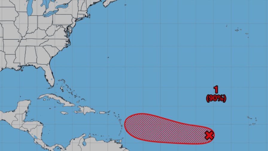 El Centro Nacional de Huracanes de Estados Unidos (CNH) informó este viernes que el sistema tropical que tiene un 90 % de probabilidad de convertirse en un ciclón tropical es probable que se acerque a las Antillas Menores a mediados o finales de la próxima semana.