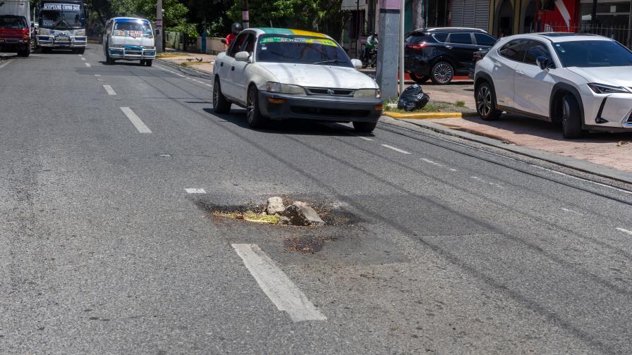 - Otro hoyo peligroso por su profundidad esta ubicado en la avenida Abraham Lincoln casi esquina José Amado Soler. Tiene una profundidad de unas tres pulgadas y posee forma cuadrada. Desde hace meses se agrava el problema.