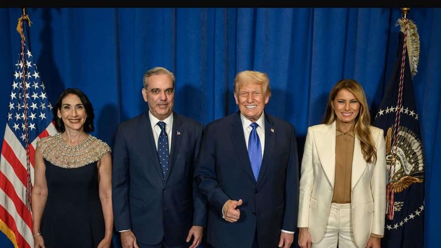 A través de su canal de WhatsApp, Abinader compartió una fotografía en la que aparece junto a la primera dama, Raquel Arbaje, acompañados por Donald Trump y Melania Trump.