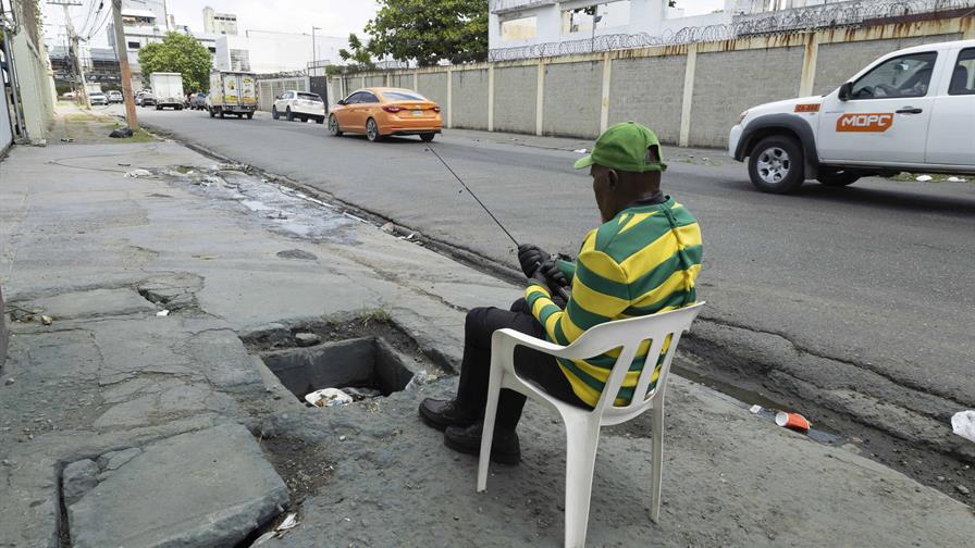 En el centro de la acera, en la calle Aníbal de Espinosa del sector Villa Juana, Distrito Nacional, un peligro sorprende a los peatones. Se trata de un registro lleno de basura y agua mal oliente.