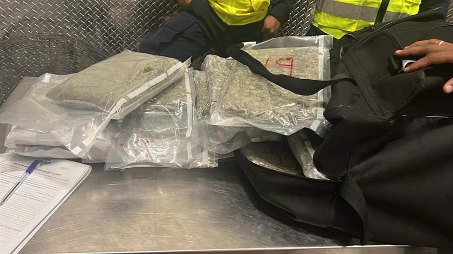 Dentro del bulto se encontraron 42 paquetes de presunta marihuana, envueltos en fundas plásticas y empacados al vacío, con un peso preliminar de 62 libras.