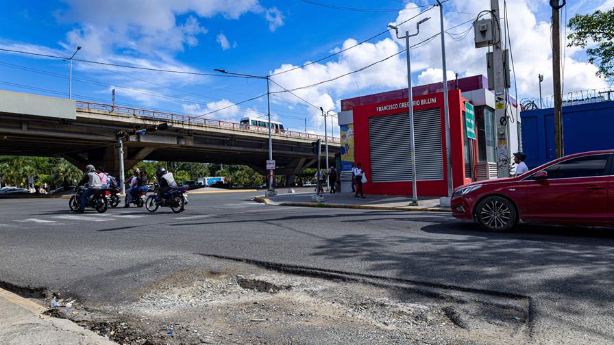 Hoyos y aguas residuales deterioran vías en el Distrito Nacional