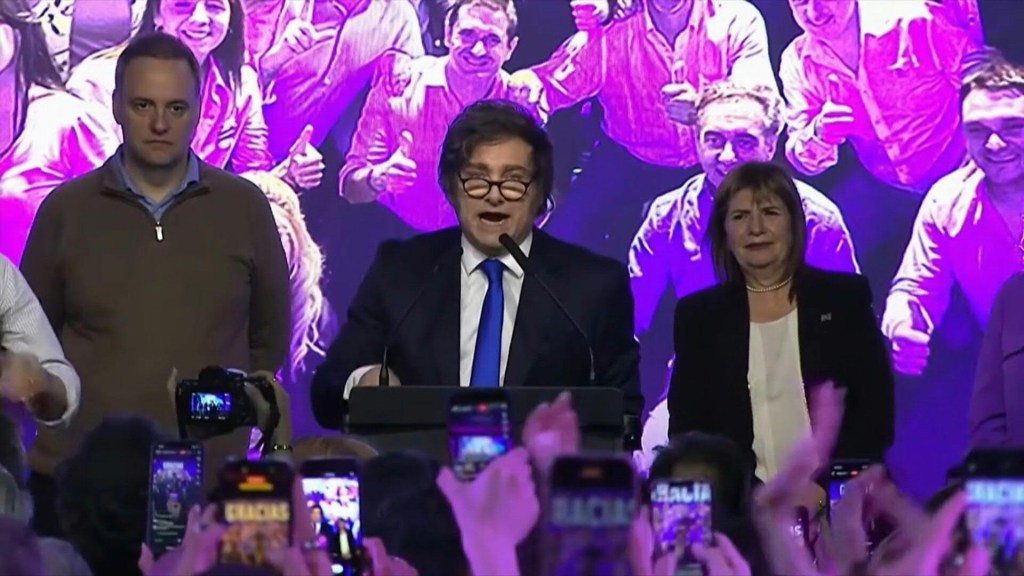 «Hoy pasamos el punto bisagra, hoy comienza la construcción de la Argentina grande«, dijo Milei en su discurso triunfal, al que entró cantando rock pero en el que se mostró mesurado y abierto al diálogo.