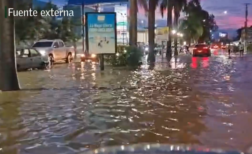 Las fuertes lluvias registradas la tarde de este jueves provocaron inundaciones en las principales calles y avenidas de Santiago, generando un caos en el tránsito vehicular y afectando incluso el elevado de la avenida Monumental, donde el agua alcanzó niveles alarmantes.