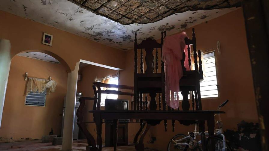 Su casa estaba húmeda y las varillas del techo aún goteaban a pesar del incesante calor. La humilde mujer expresó que tuvo que desplazarse con sus dos hijos a casa de vecinos.