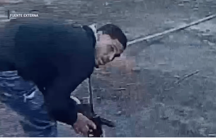 En el video, dado a conocer por la Policía, se ve a los hombres desmontarse de la yipeta, dispararon a los agentes, se marcharon por encima de las casas y se montaron en un camión de basura color.