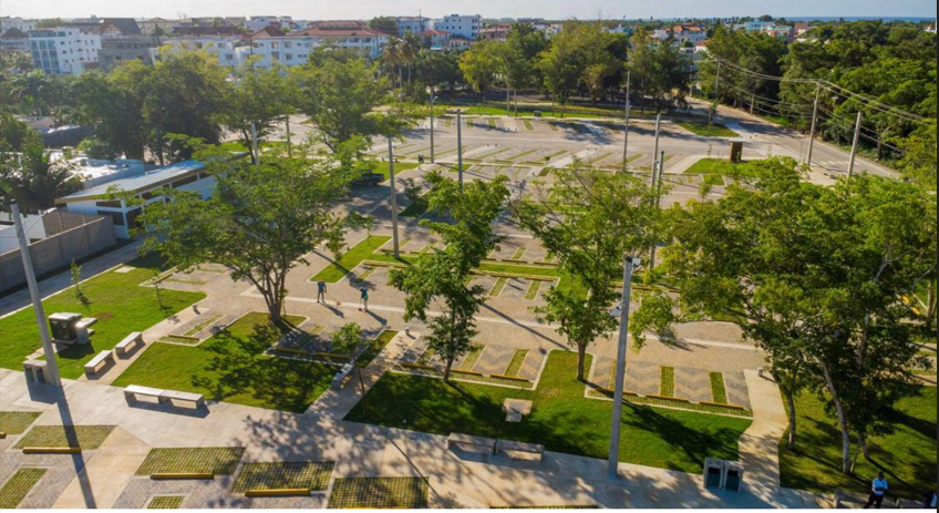 Además de la construcción del parqueo para más de 270 vehículos de motor, la obra conllevó la construcción de 2,364 metros cuadrados de aceras, drenaje pluvial, adoquinado en calle Norte, señalización vertical y horizontal, señaléticas informativas, bolardos, zafacones, bancos, sendero y un puente peatonal.