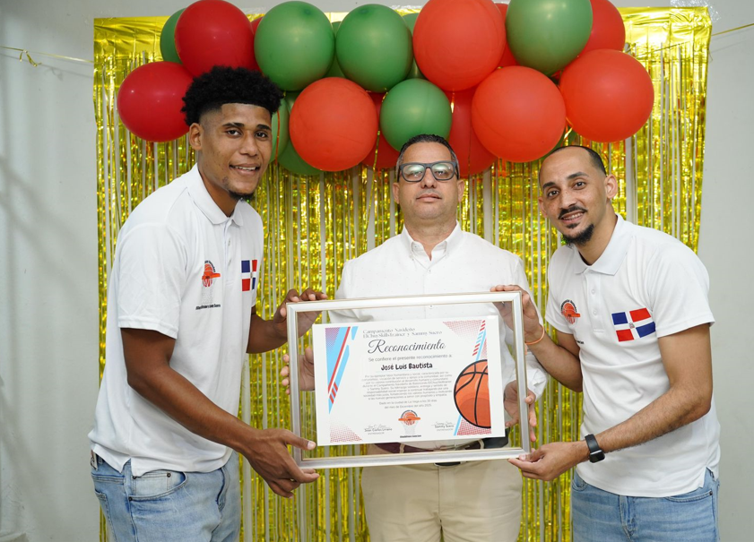 Los jóvenes Jhan Carlos Liriano y Sanmy Suero al momento de hacer entrega del reconocimiento,dijeron que por su ejemplar labor humanitaria y social,caracterizada por su compromiso,vocación de servicio y apoyo a la comunidad,así como por su valiosa contribución al desarrollo humano y comunitario durante el Campamento Navideño de Baloncesto ElChuySkilltrainer y Sammy Suero,con su liderazgo solidario, entrega y sentido de responsabilidad social inspiran a continuar trabajando por una sociedad más justa, fortaleciendo los valores humanos y motivando a las nuevas generaciones a servir con propósito y empatía,enfatizaron los organizadores del tan importante evento.