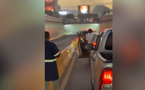 Ante la situación, los conductores que se encontraban atrapados comenzaron a desmontarse de sus vehículos para observar el siniestro, mientras que otros permanecían en sus autos, según se observa en los videos que circulan en redes sociales.