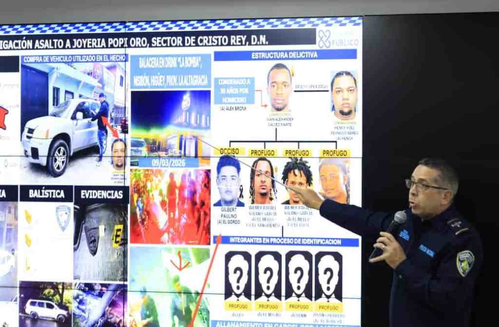Indicó que fueron identificados varios de los participantes en la ejecución del asalto, uno de los cuales falleció posteriormente en medio de un conflicto social registrado la madrugada del día siguiente al robo en un centro de diversión de Nisibón, en la provincia La Altagracia.