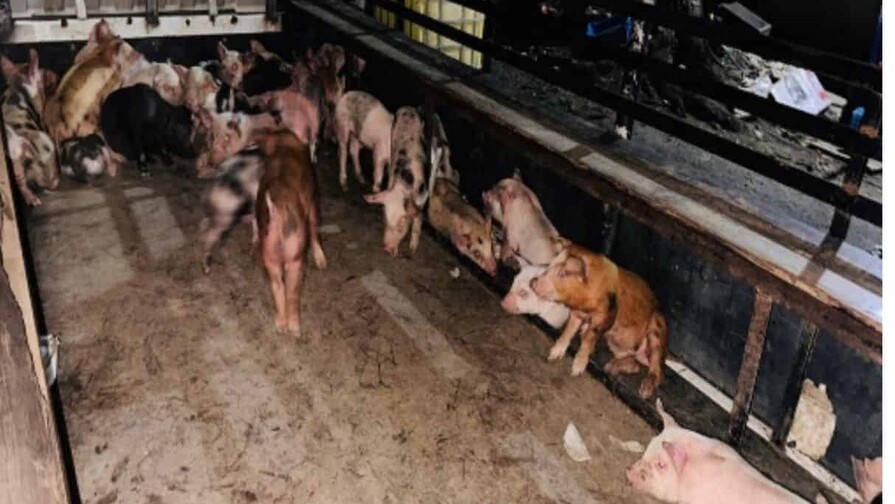 Tras recibir la denuncia, unidades policiales iniciaron un operativo de búsqueda que permitió ubicar el vehículo en el que eran transportados los cerdos, en la carretera Don Pedro.