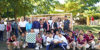 Inefi entrega cancha de fútbol,porterías y útiles al Politécnico Miguel Angel Ibañez de La Vega.Entrega de cancha futsala,útiles de beisbol,baloncesto,voleibol,ajedrez y fútbol.