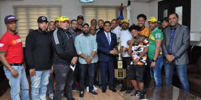 Alcalde Kelvin Cruz entrega 250,000.00 pesos a Tobacave y recibe en su despacho a los actuales campeones Antiguos.