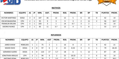 Martinez y Suero electos los mejores de la tercera semana del XXVII Torneo de Baloncesto Superior Vegano.