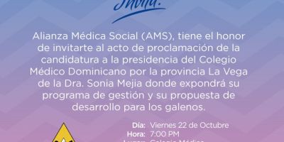 Alianza Médica Proclama a la Dra. Sonia Mejia como la próxima presidente CMD Filial La Vega.